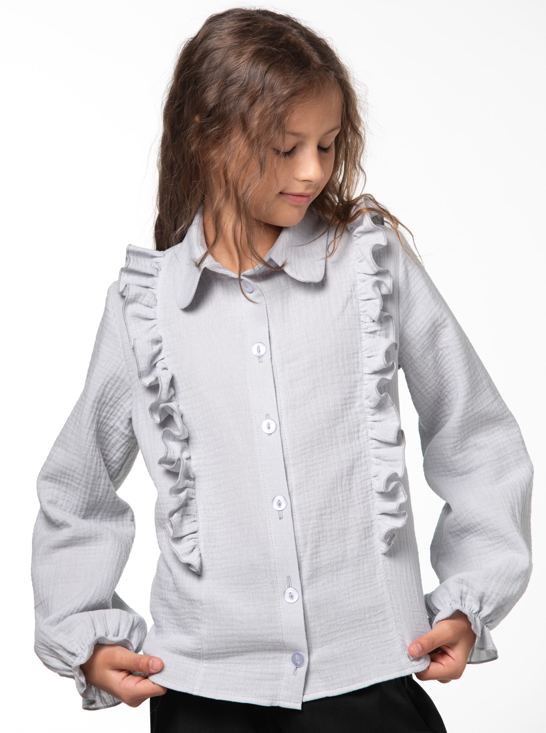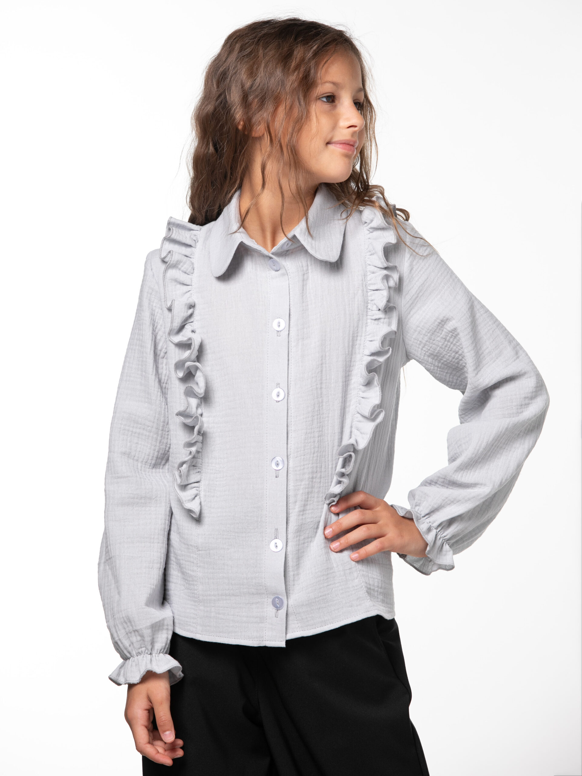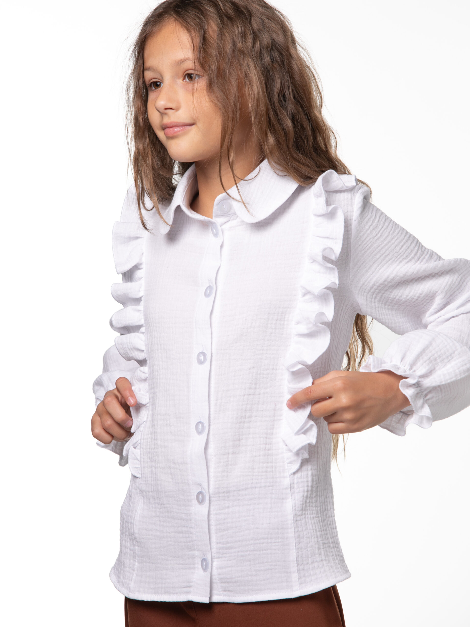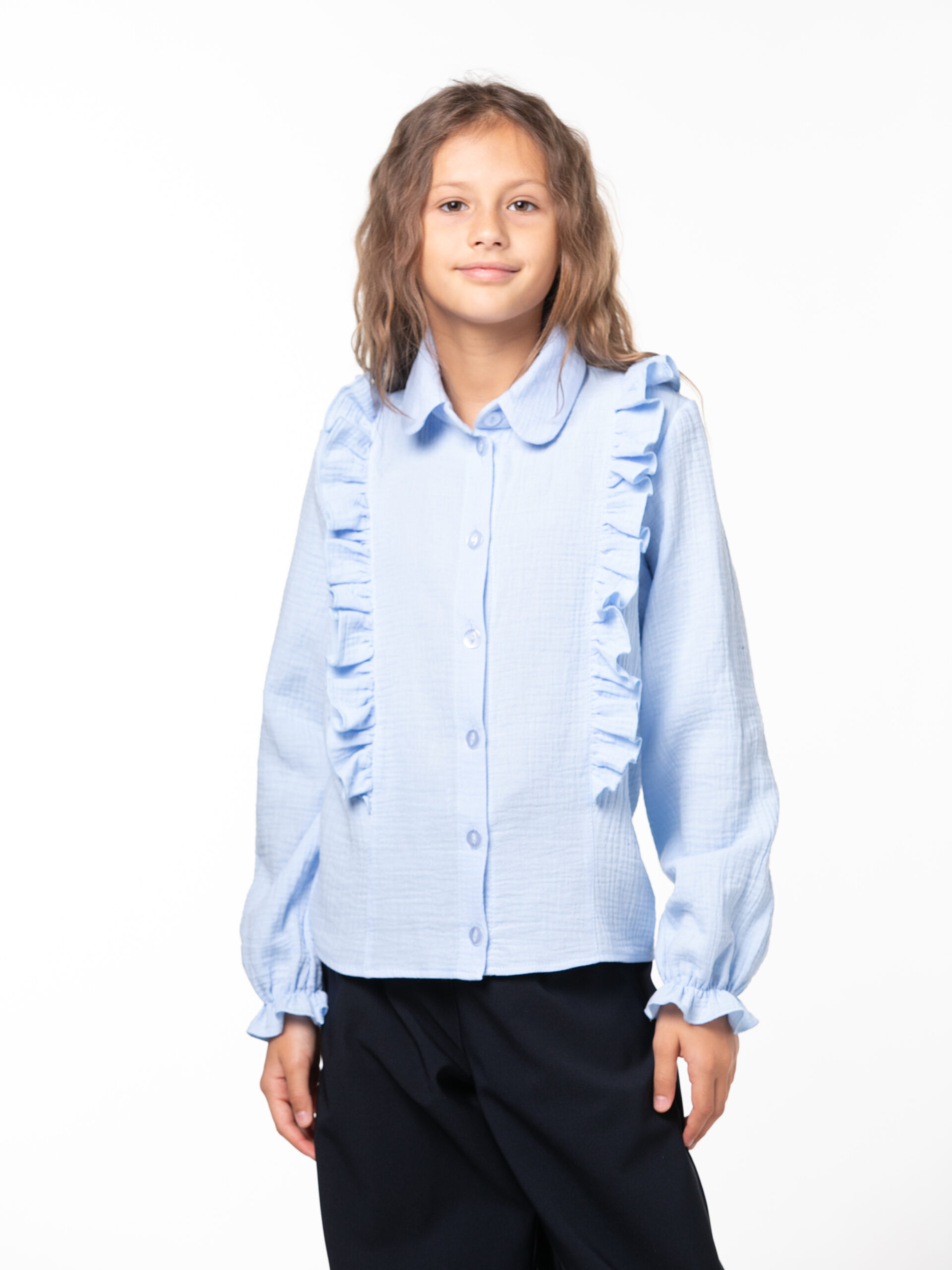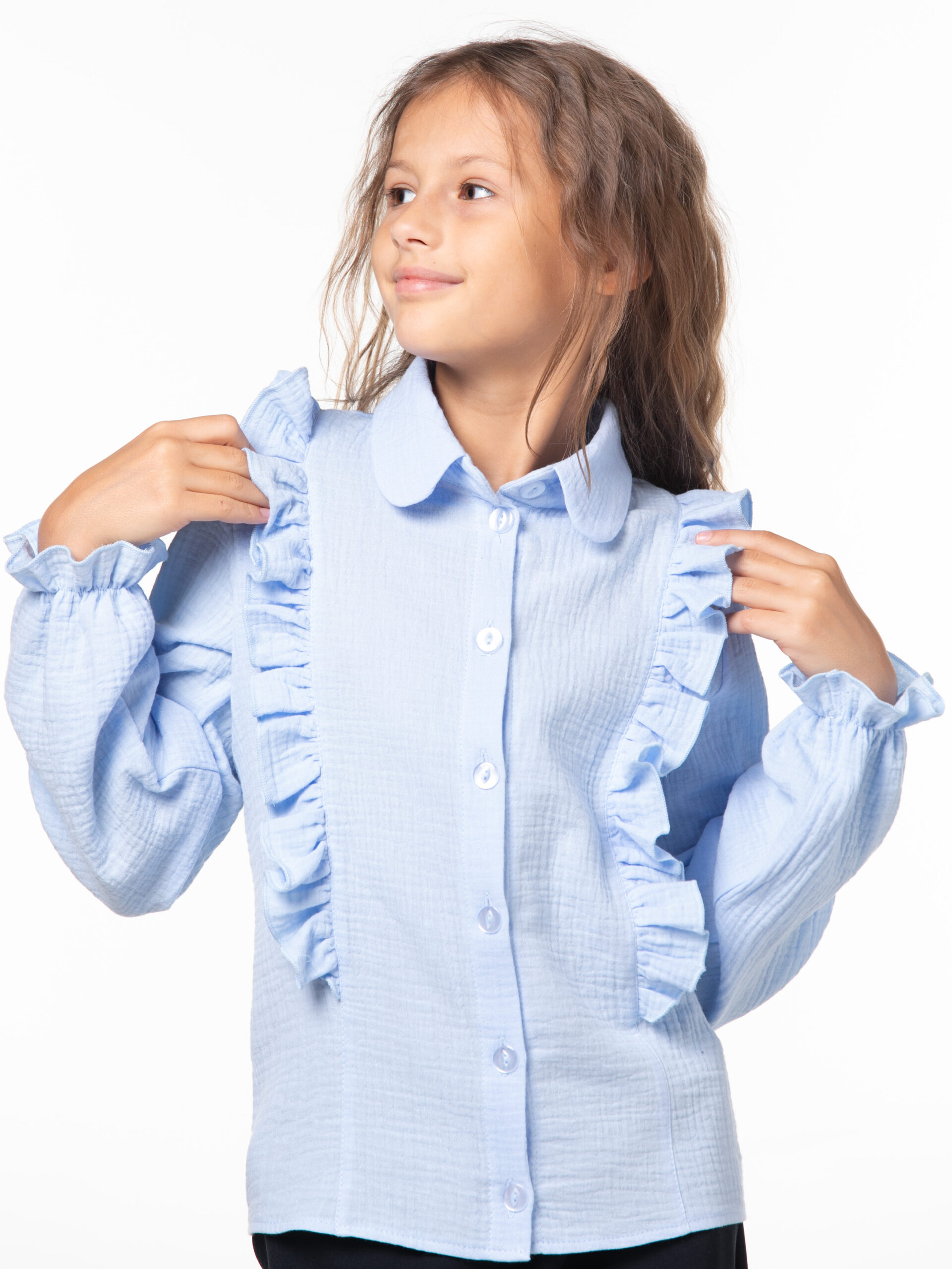 Легкая школьная блузка из муслина с рюшами от L&K — идеальный выбор для вашей девочки! Наша блузка из высококачественного муслина прекрасно подойдет как для школьных будней, так и для торжественных мероприятий и на каждый день. Изготовленная из натурального хлопка, она легко держит форму, не мнется и не линяет, что делает ее идеальной для активных девочек. Блузка с длинным рукавом – это прекрасное дополнение к любому комплекту, она станет незаменимым элементом гардероба, а также превосходным выбором для фотосессий и праздников.