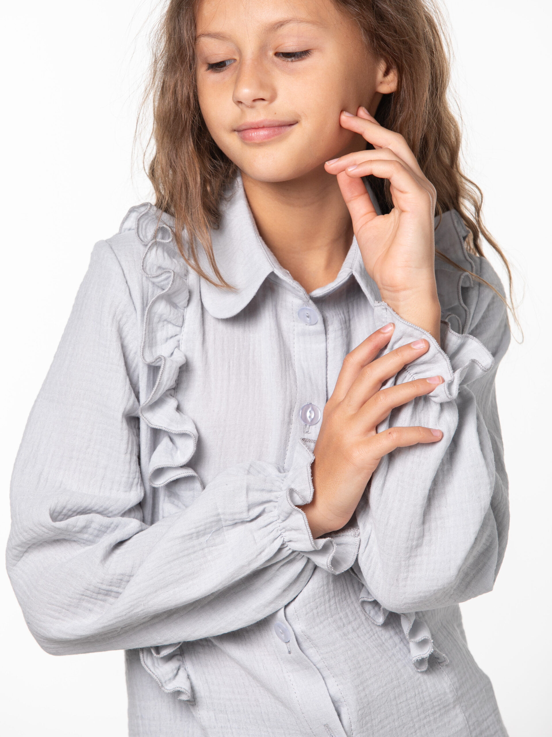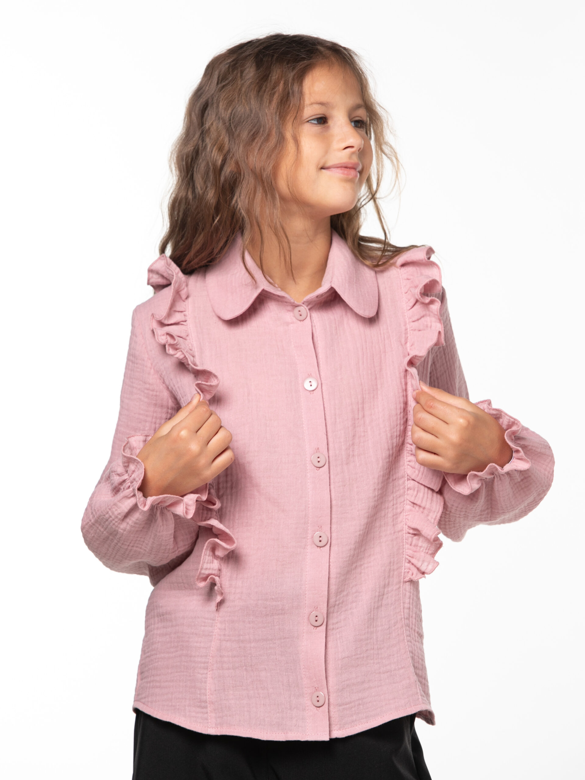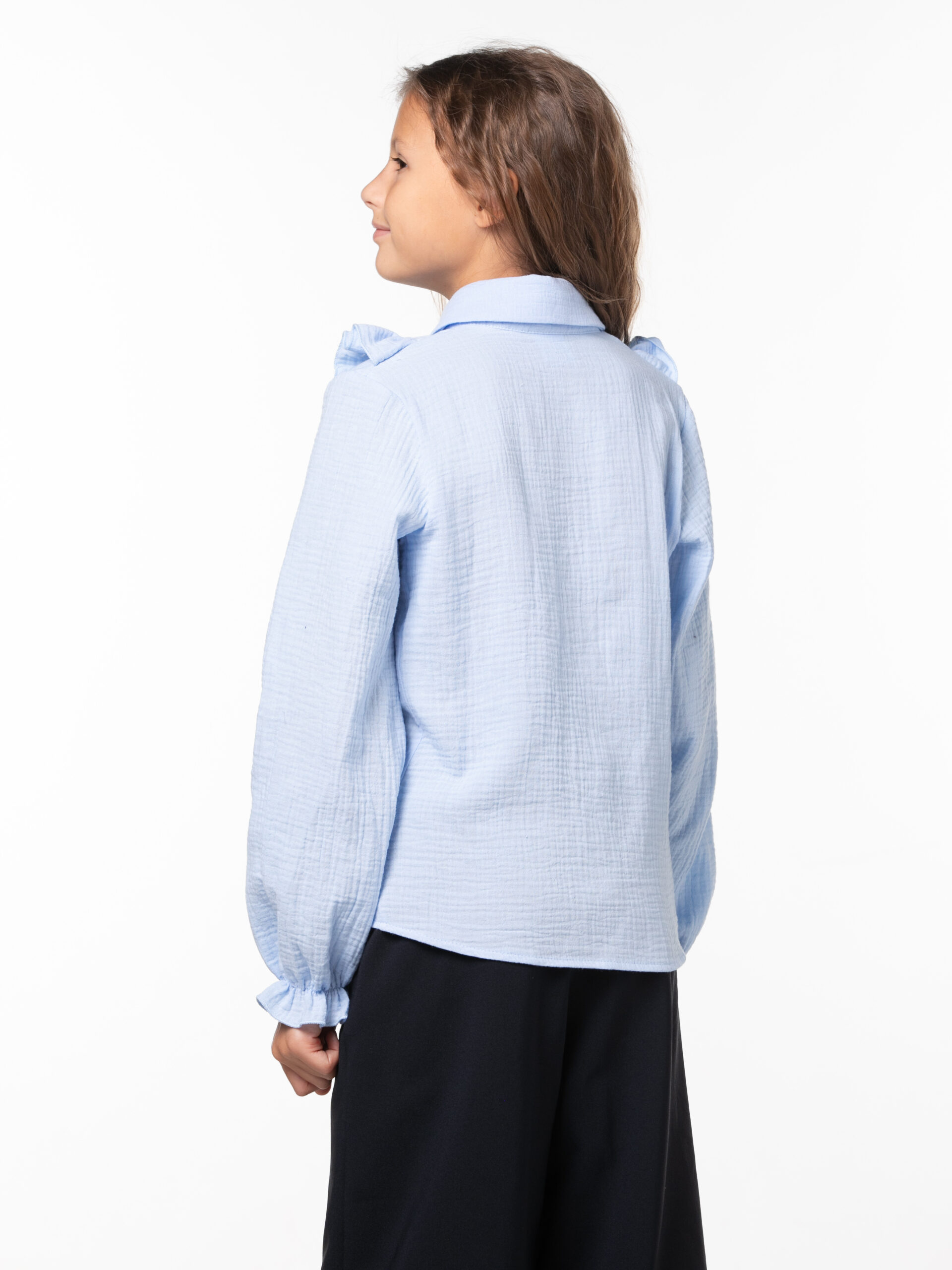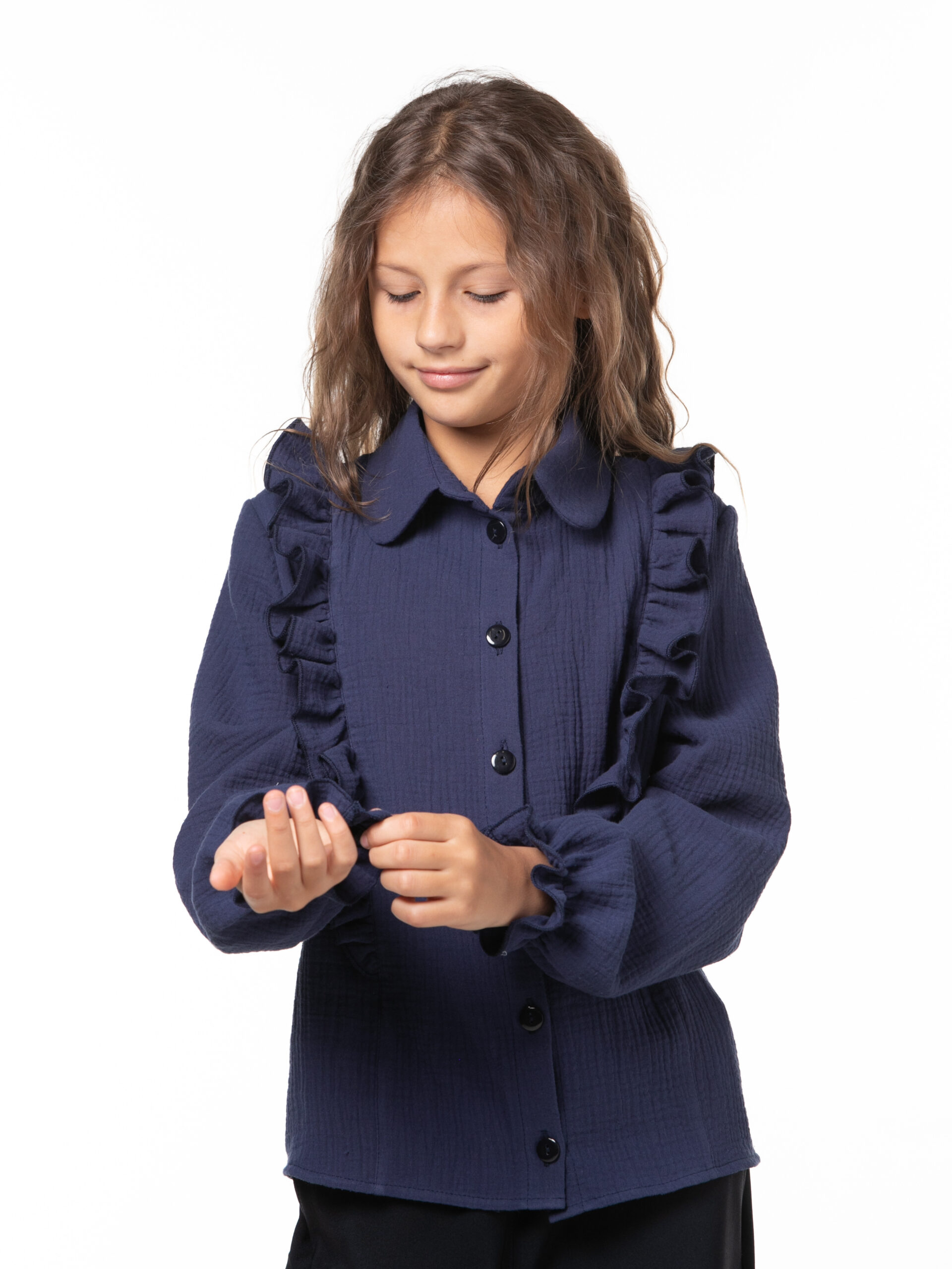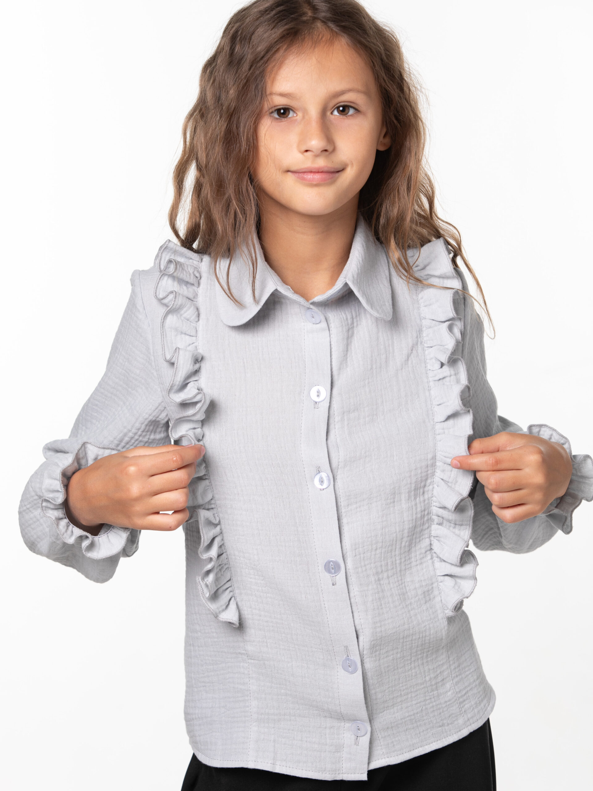 Легкая школьная блузка из муслина с рюшами от L&K — идеальный выбор для вашей девочки! Наша блузка из высококачественного муслина прекрасно подойдет как для школьных будней, так и для торжественных мероприятий и на каждый день. Изготовленная из натурального хлопка, она легко держит форму, не мнется и не линяет, что делает ее идеальной для активных девочек. Блузка с длинным рукавом – это прекрасное дополнение к любому комплекту, она станет незаменимым элементом гардероба, а также превосходным выбором для фотосессий и праздников.