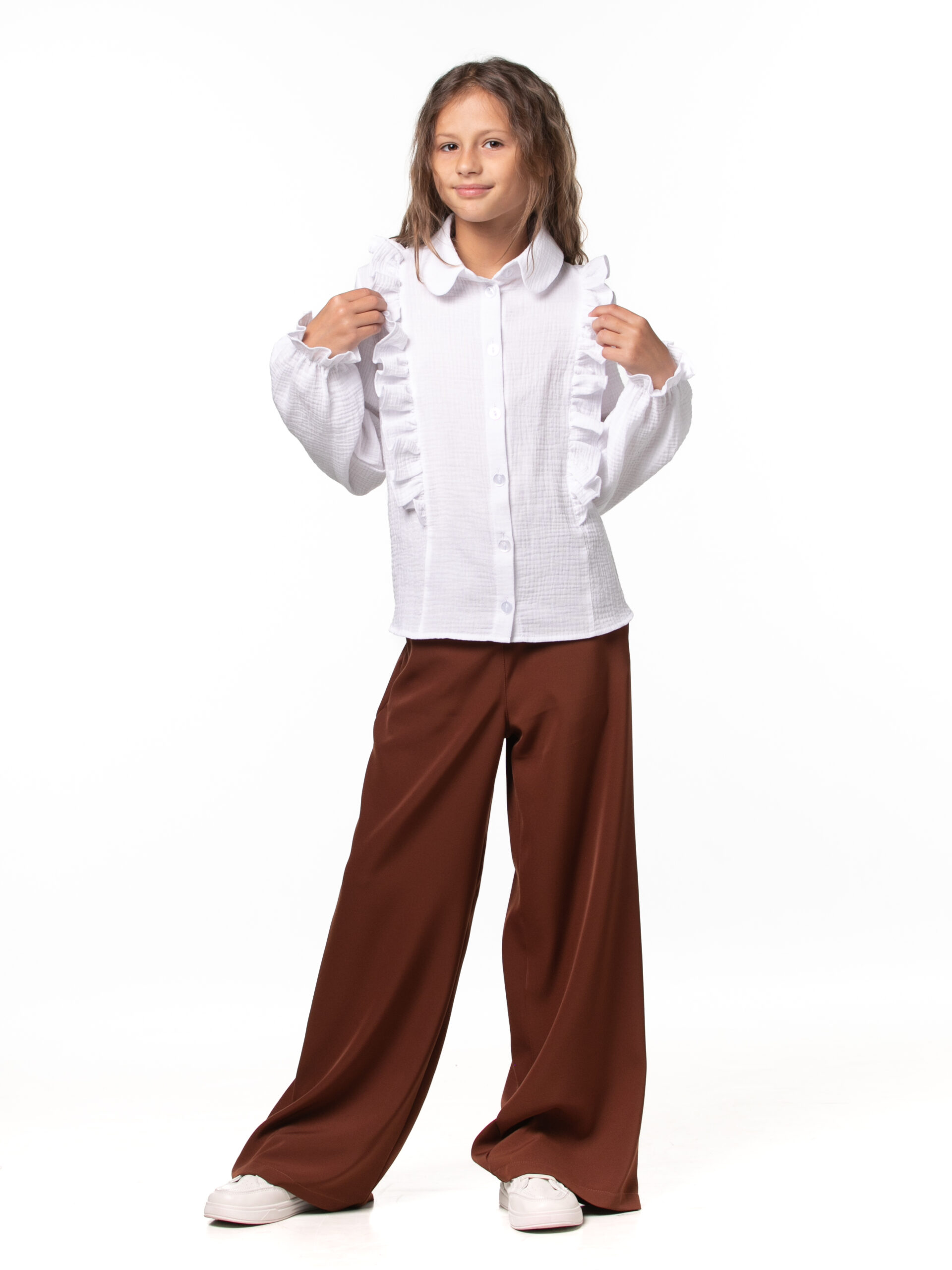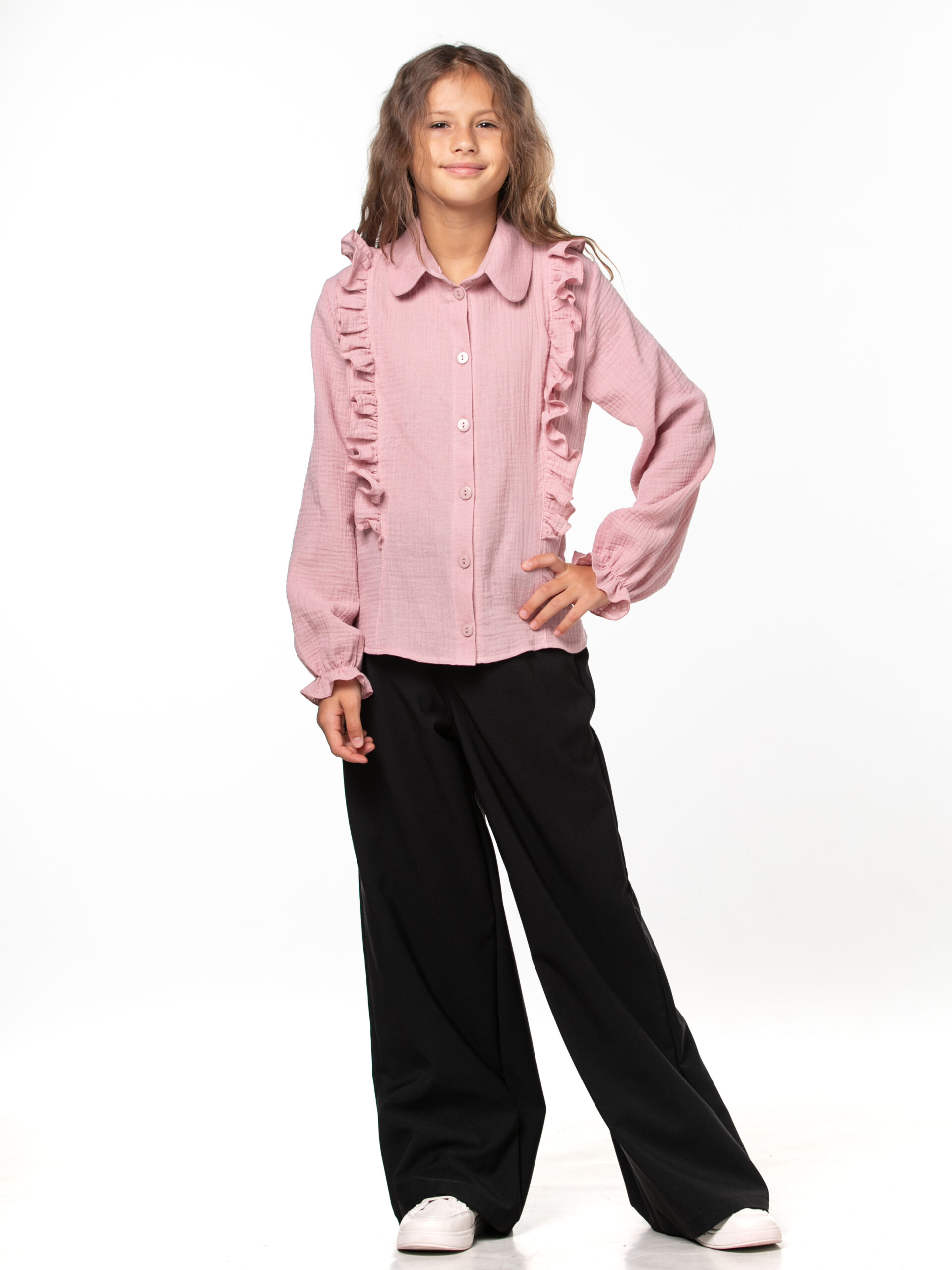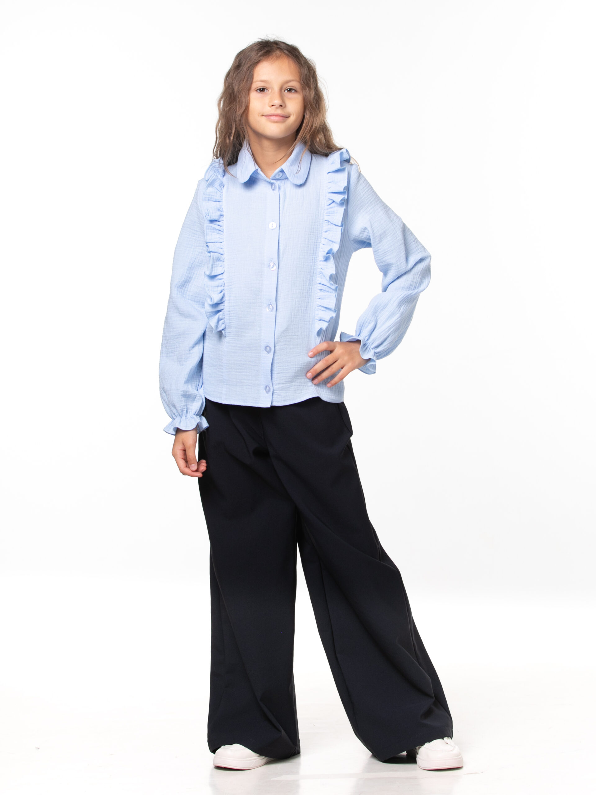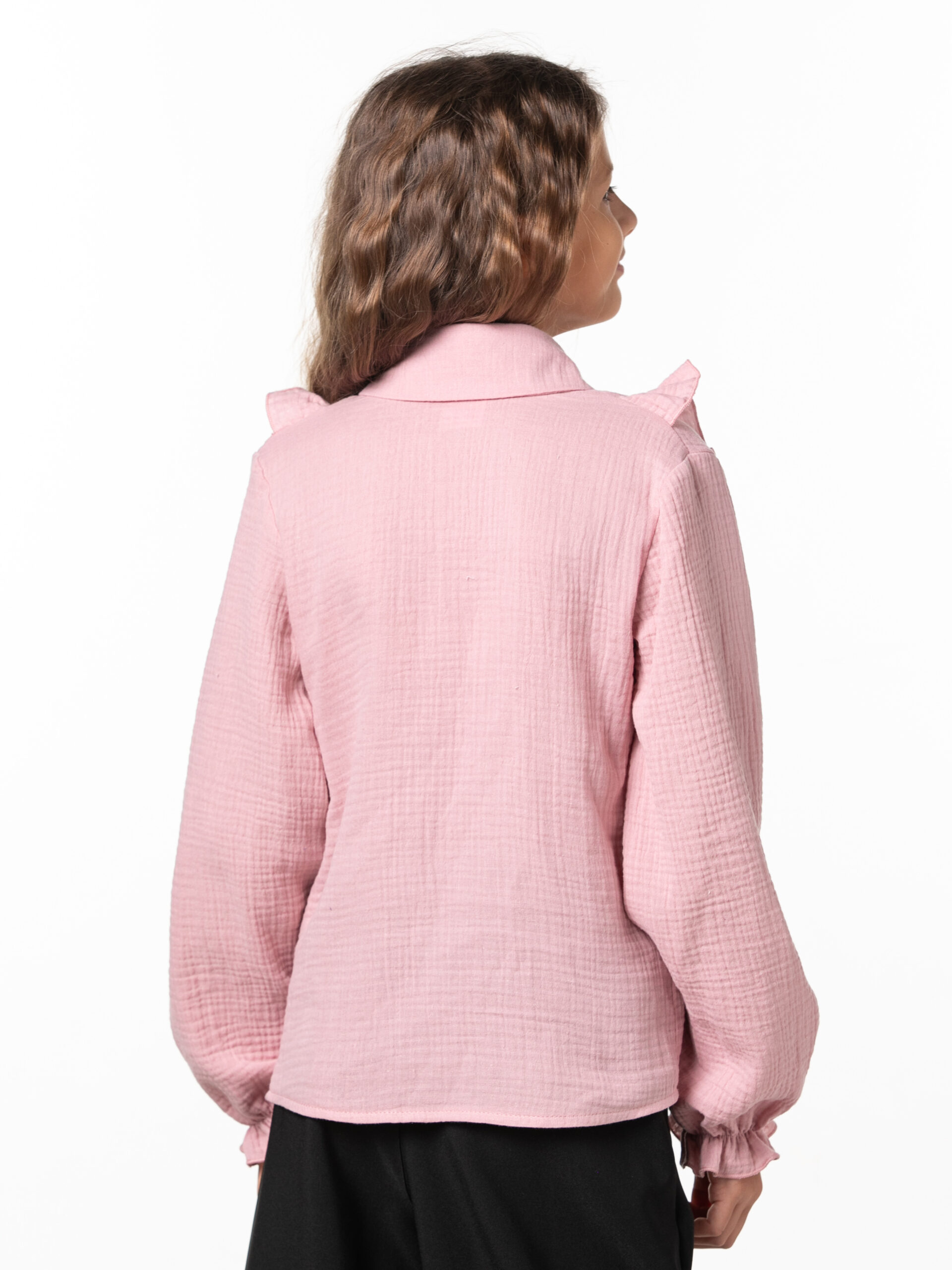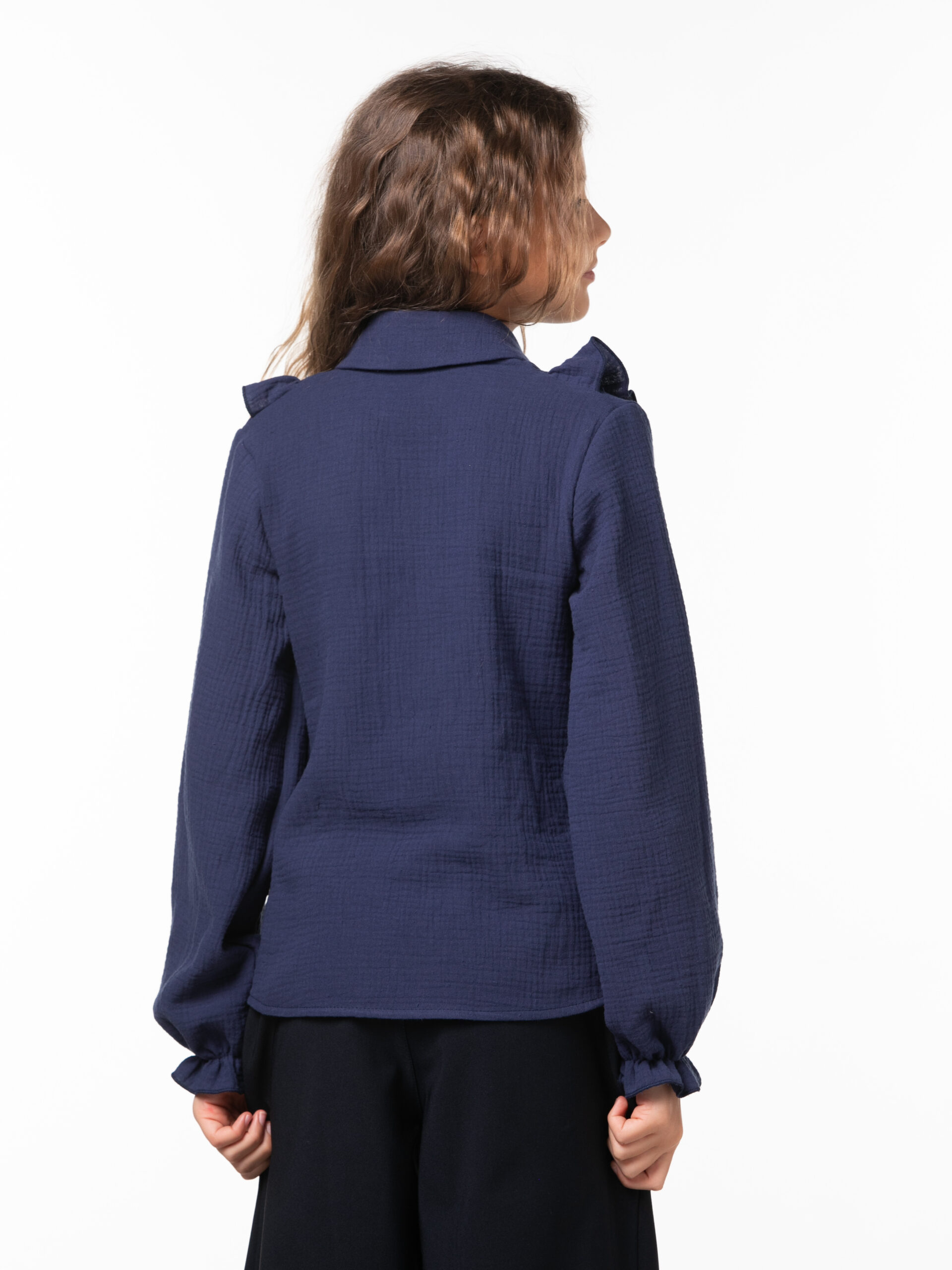 Легкая школьная блузка из муслина с рюшами от L&K — идеальный выбор для вашей девочки! Наша блузка из высококачественного муслина прекрасно подойдет как для школьных будней, так и для торжественных мероприятий и на каждый день. Изготовленная из натурального хлопка, она легко держит форму, не мнется и не линяет, что делает ее идеальной для активных девочек. Блузка с длинным рукавом – это прекрасное дополнение к любому комплекту, она станет незаменимым элементом гардероба, а также превосходным выбором для фотосессий и праздников.